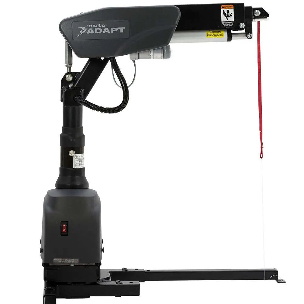 The Carolift 6900 Telescopic Boot Hoist has powered swivel and lift, operated via a hand-held control. It also features a telescopic arm that assists in bypassing narrow door openings or wide bumpers.